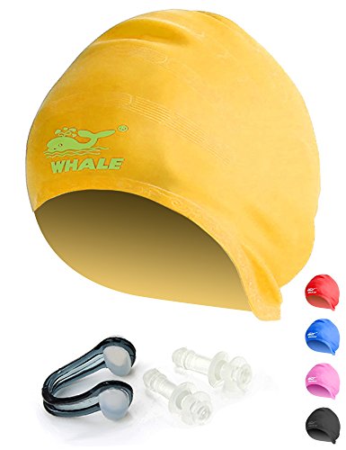 Large Swim Cap for Long Thick and Curly Hair Waterproof Silicone Swimming Caps For Women Men And Kids Ear Protection for Swimming Single Pack With Ear Plugs and Nose Clips