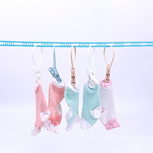 BoomYou 30 Pcs Clothes Peg Rope Clip Pins Hanging Clothesline Windproof Hanger Sock Clothes Drying Peg Laundry Plastic Clips Hooks