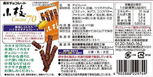 原材料:カカオマス、砂糖、ココアパウダー、ビスケット、米パフ、ココアバター、アーモンド、果糖/乳化剤、香料、膨脹 剤、(一部に小麦・乳成分・大豆を含む)
