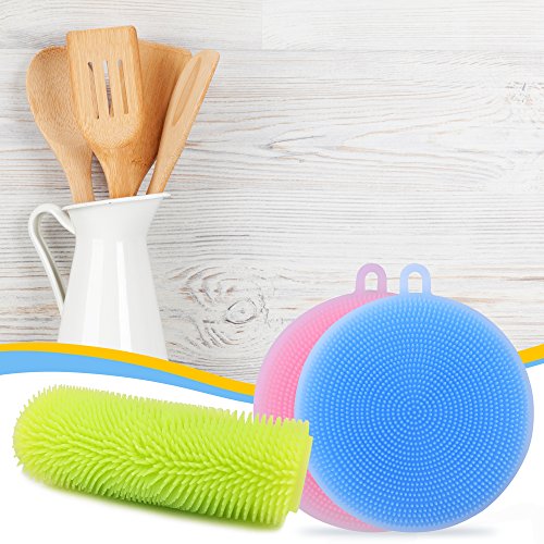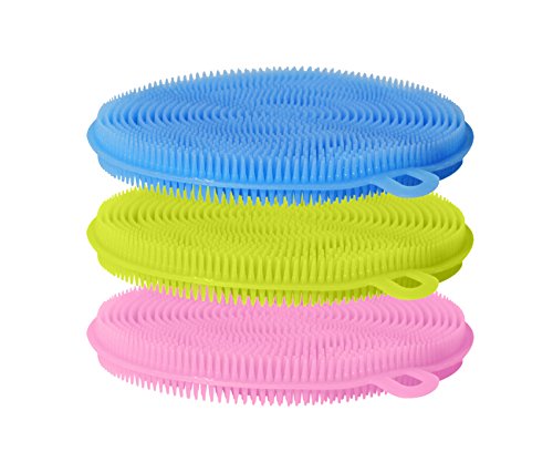 - QUALITY SILICONE FOR HEAVY SCRUBBING: Made of high quality food grade silicone, you may rest assured that this kitchen dish scrubber can withstand some heavy duty use. Save your precious time and money with this reusable dish sponge pad. Worry no more about scratchy sponges damaging your cutlery.We’ve got you covered.
