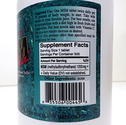 Each tablet contains 1200 mg of pure MSM
