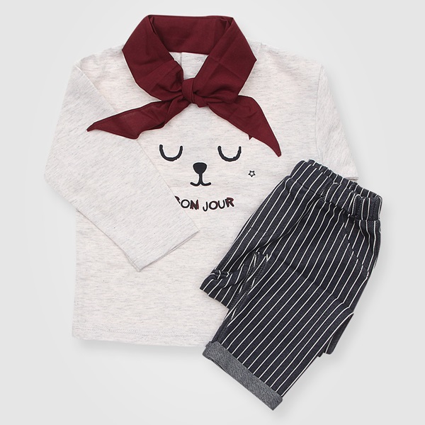 스트라이프를 넣은 하의는 고급스러운 느낌을 더하며 스카프 또한