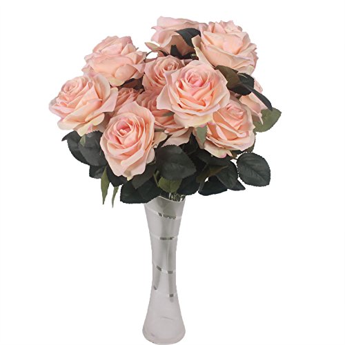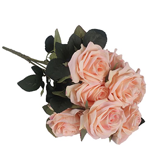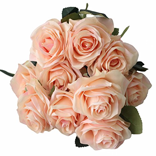 JAROWN Silk Rose Artificial Flowers Bouquet Arrangement for Wedding Home Decor Party Gifts (Champagne)