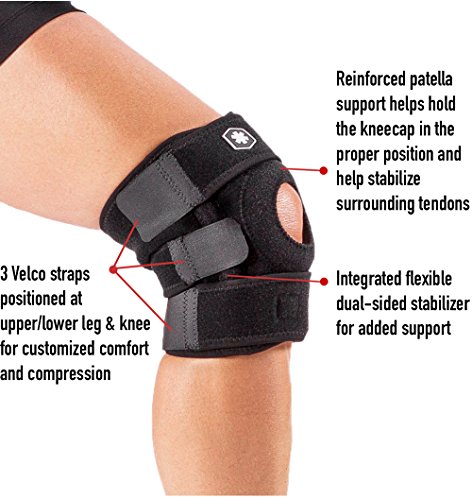 - COMFORT AND EASE OF USE - Customize your IWF765 knee support brace for compression and a comfortable fit. One size adjustable for right knee pain or left knee pain. Built-in patella and side stabilizers keep sports knee brace in place during movement while allowing flexibility and providing support. ONE SIZE FITS MOST MEN AND WOMEN