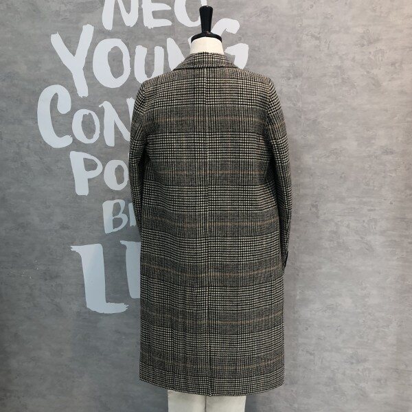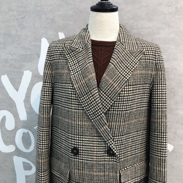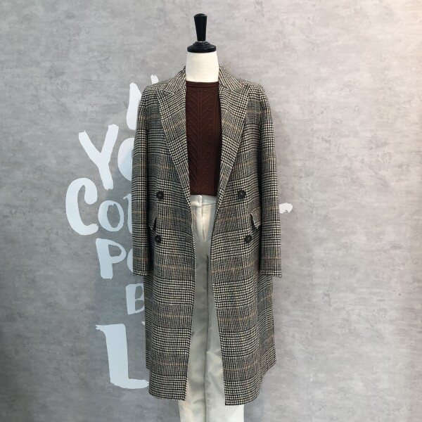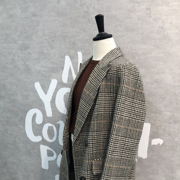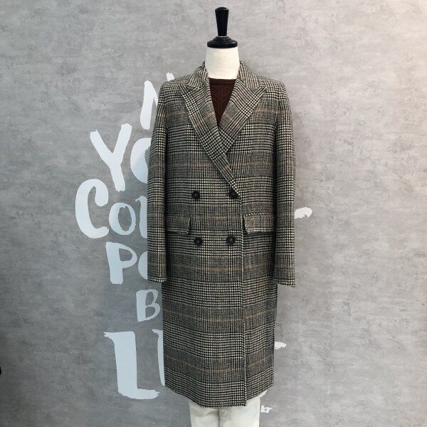 글렌체크 패턴이 클래식하고 멋스러운 핸드메이드 디테일의 더블 버튼 코트입니다