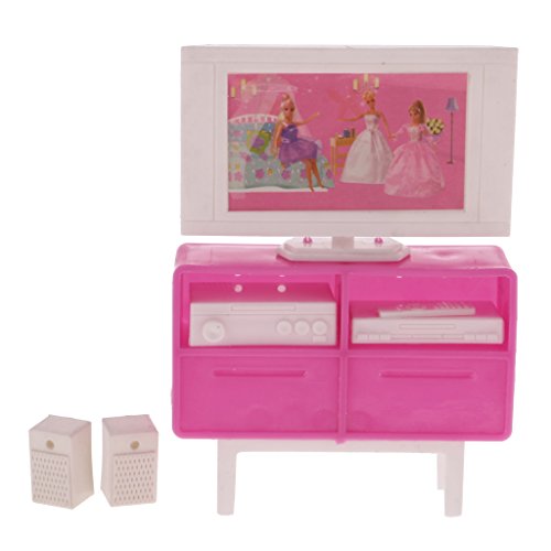 Description: - 1/12 dollhouse miniature furniture set. Great accessory for your dollhouse - Includes TV, TV cabinet, DVD player and power amplifier - Size: 10.5*3*15 cm / 4.1*1.2*5.9 inch - Material: plastic - Color: pink
