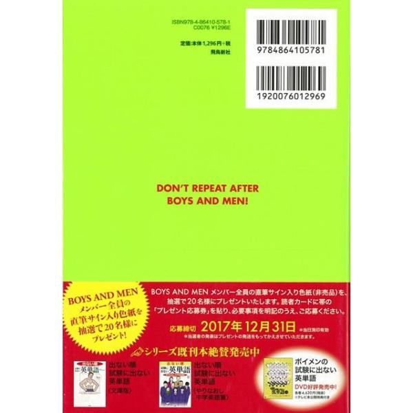 【商品説明】 定価(税込み):1,400円 値引き:10% OFF 出ない順シリーズ最新刊!!ボイメンといっしょにとてもくだらない例文で英語を学びましょう。 バーゲンブック 新品 特価 格安 語学 辞書 英語 えいご 洋書 試験 |
