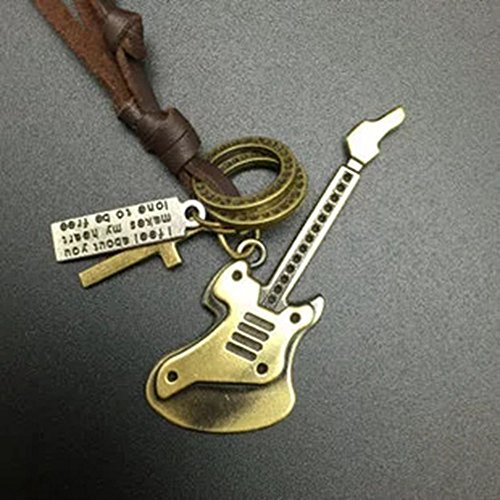 -. Binding : Jewelry -. Brand : Victoria Echo -. Department : boys -. Feature : Materia: Genuine Leather / Perimeter: 19 to 35 inches,Adjustable / Fashion Guitar Pendant necklace with soft leather.It's very comfortable to wear / Unisex Accessory. Best chooce to send it to someone you like / It usually takes about 7-15 days for delivery. one necklace & velvet bag -. Label : Victoria Echo -. Manufacturer : Victoria Echo -. Model : Ve-012 -. MPN : Ve-012 -. PartNumber : Ve-012 -. ProductGroup : Jewelry -. ProductTypeName : FASHIONNECKLACEBRACELETANKLET -. Publisher : Victoria Echo -. Studio : Victoria Echo -. Title : Victoria Echo Lucky Bronze Cross Rock Guitar Pendant Necklace,Letter Leather Necklace Adjusatble