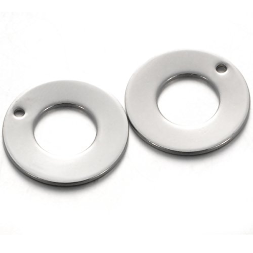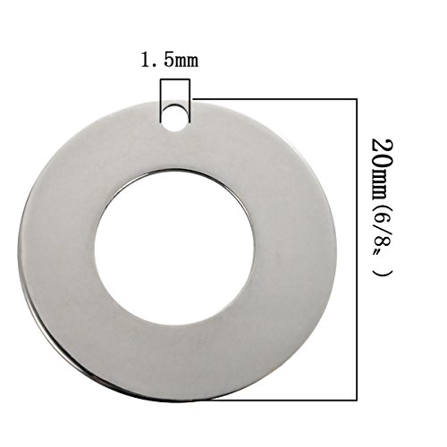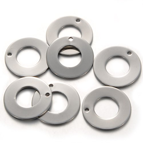 VALYRIA 20pcs Silver Tone Stainless Steel Stamping Blanks Tags Donuts Ring Charm Pendant 20mm(6/8")