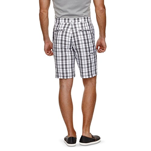 Product Description Old-school design meets modern performance. Crafted from no-iron fabric with moisture-wicking capabilities, this Haggar short features a classic flat-front construction and hidden extender waist for the ultimate combination of form and function. 0