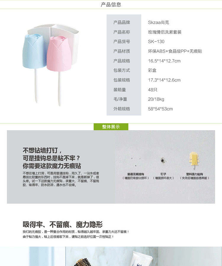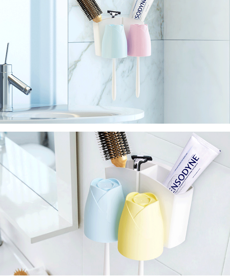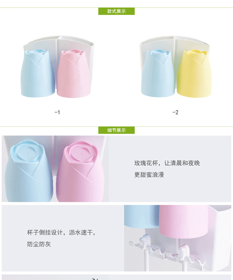 情侣牙刷架玫瑰创意漱口杯强力吸盘无痕免钉洗漱套装牙具座刷牙杯
