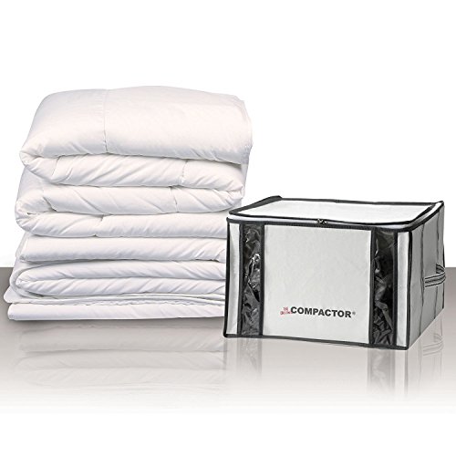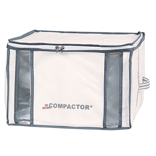 Saves up to 75% more space than when using traditional storage bags. Color coded zip lock seal keeps bag air-tight. Patent pending LED indicator light turns off when bag is completely compacted, saving the bag and your vacuum from damage. Patented interior vacuum compactor bag is fixed into the storage chest ensuring a space saving and even pack time after time. Easy to use with any standard vacuum hose attachment.