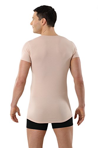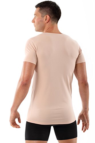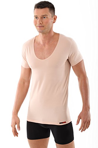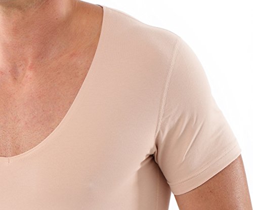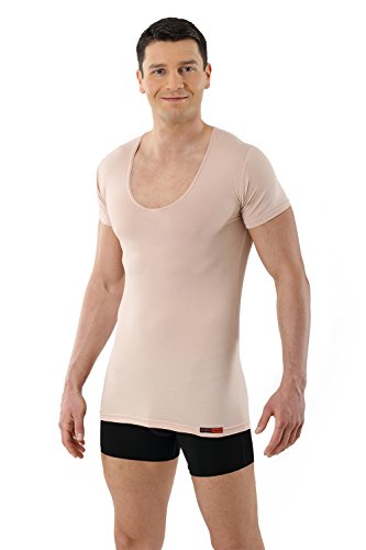 Thanks to the extra-deep v-neck - you cannot notice the deep-v-neck-undershirt under your business shirt - even if two buttons of the outer shirts are unbuttoned. The new neckline is extra flat and completely invisible even under a very thin business shirt. This men's vest has a body-fitting slim fit cut and is entirely sewn with flatlock-seams. The sleeves are particularly short - so you can wear even a short-sleeve shirt or a Polo over this vest.