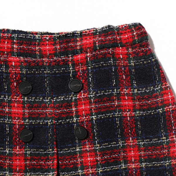 상세설명-허리는 조절이 가능한 통밴드로 되어있고 네이비컬러와 레드컬러의 배색이 고급스러운 느낌의 스커트입니다.