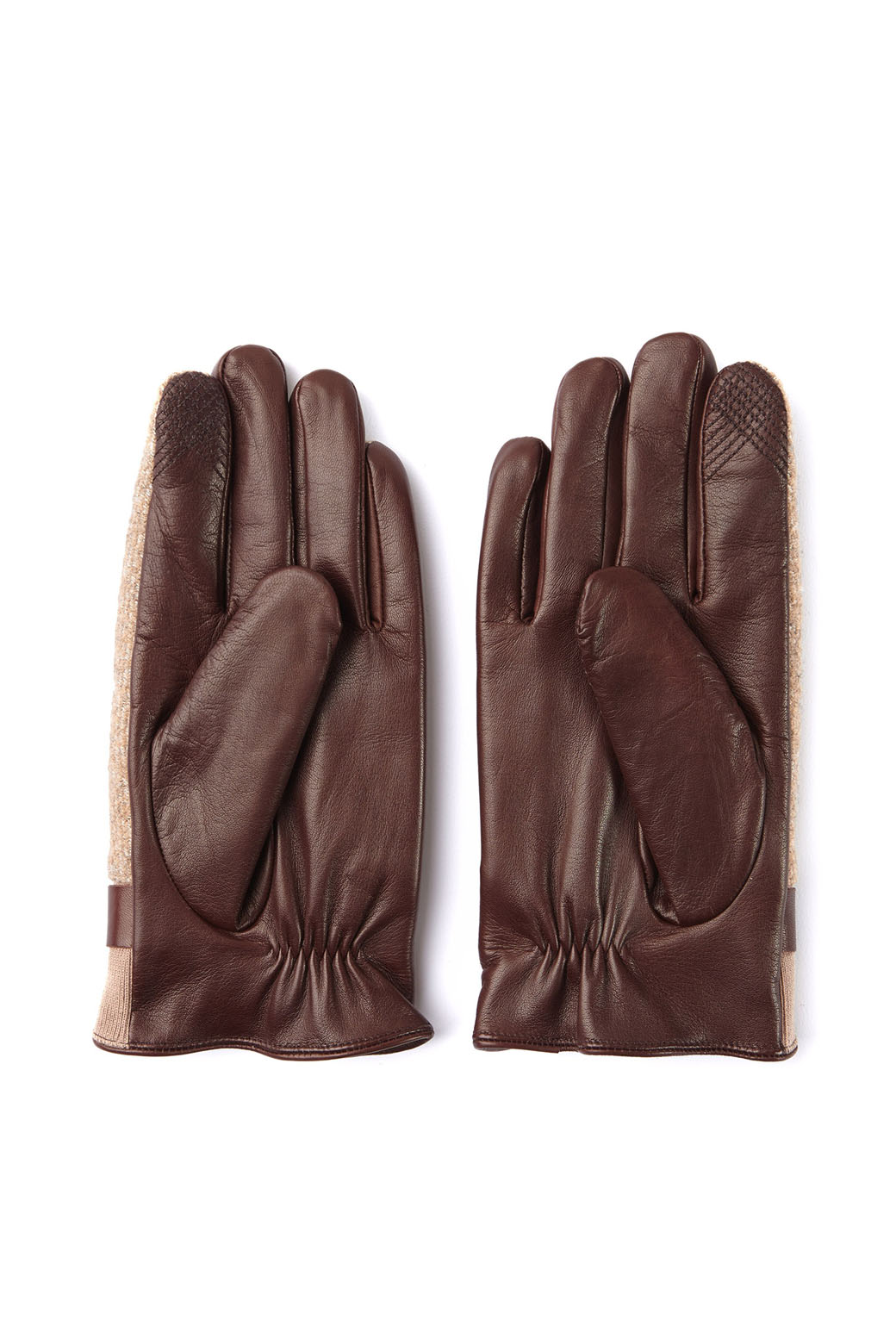 - 수입 방모 소재와 시보리가 믹스 된 남성 울 배색 가죽 장갑. - 손바닥은 양가죽으로 부드러우며, 검지 끝에 터치사 자수가 되어있어 간단한 터치가 가능. - 손목에는 스냅 버튼으로 사이즈 조절이 용이.- 캐쥬얼한 룩이나 포멀한 룩에 착용할 수 있는 멋스러운 아이템.
