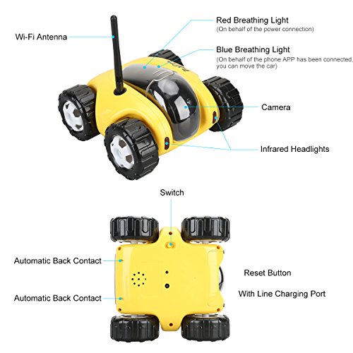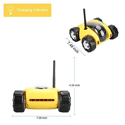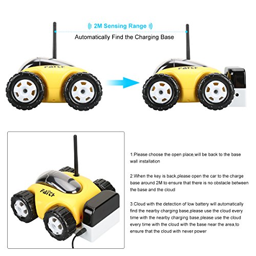 FAITH CLOUD ROVER IV Cloud Companion RC Car Wi-Fi P2P Remote Control 1.3MP 720P HD Baby Monitor SPY Tank Car APP Control Movement Motion IP Camera Home Remote Camera with Charging Dock (Yellow)