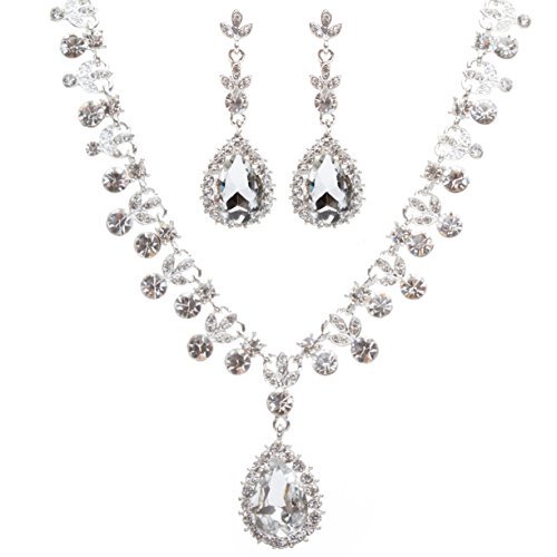 -. Title : ACCESSORIESFOREVERブライダルウェディングプロムジュエリーセットクリスタルラインストーンゴージャスなティアドロップネックレスシルバー