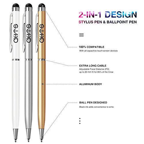 Stylus Pen, DHTS 10 Pcs 2 in 1 Slim Stylus, Ballpoint Pen for Universal Touch Screens Devices, iPhone 7, iPhone 6 Plus, iPad, Tablets, Samsung , 10 Color