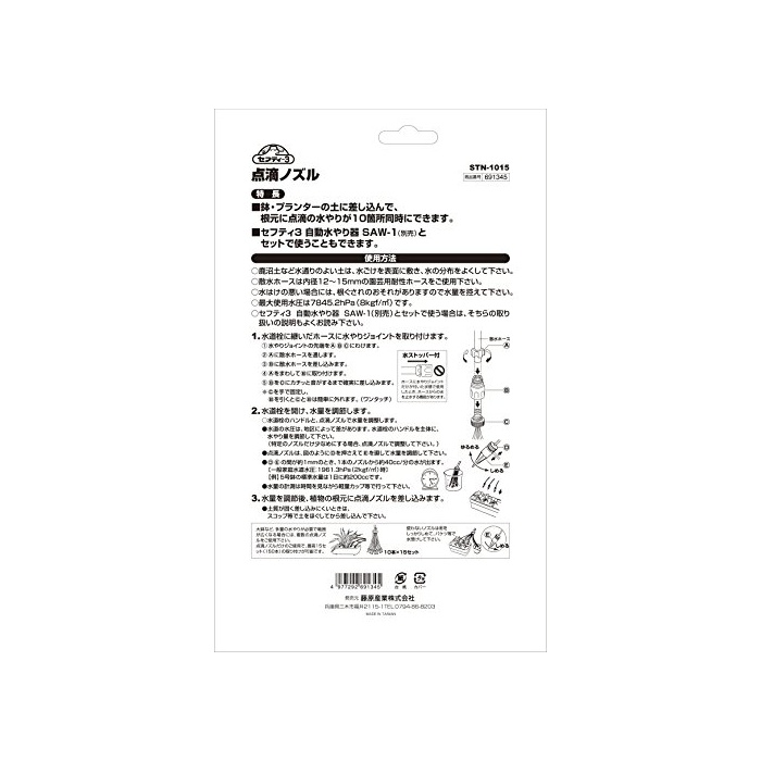 원본상품명: セフティ3 園芸給水 点滴ノズル 10か所同時水やり 鉢プランタ用 STN-1015