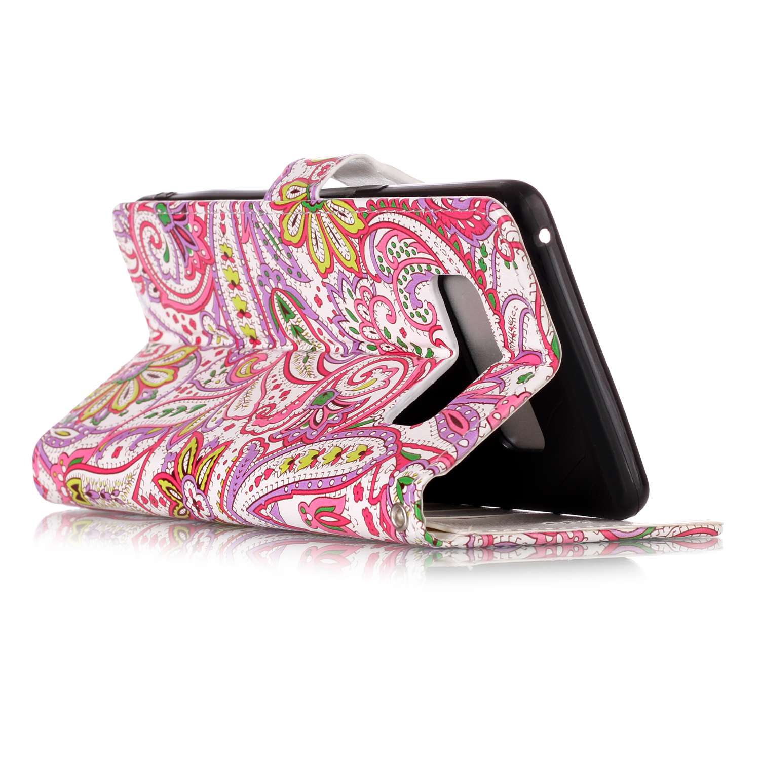 Flower pattern PU material wrestling card wallet type flip belt stent embossed varnish mobile phone holster yh