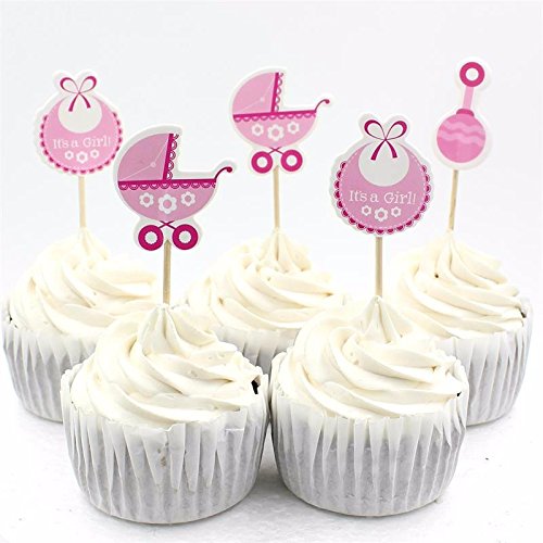 Set of 18 It's a Girl Cupcake Toppers Baby Shower Cakes Decoration Birthday Party Favors for Kids