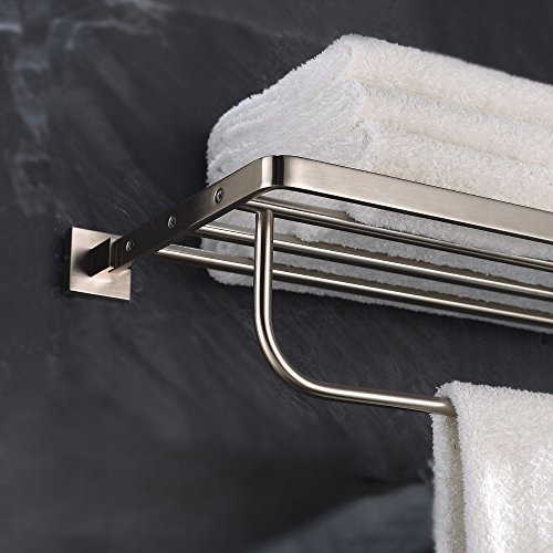 Kraus KEA-14442BN Aura Bathroom Accessories - Bath Towel Rack with Towel Bar Brushed Nickel