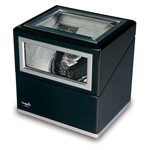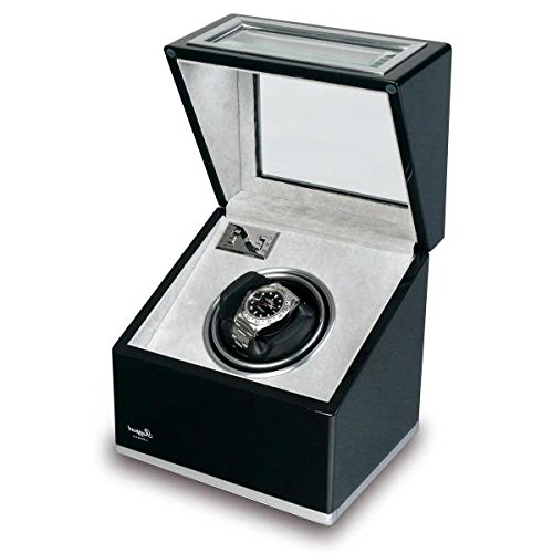 -. Title : Rapport London Single Watch Winder, Aluminum and Ebony w/ Glass Panels