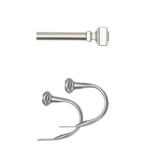 AmazonBasics 1" Curtain Rod with Square Finials, 72" to 144" and Decorative Curtain Holdback, S...