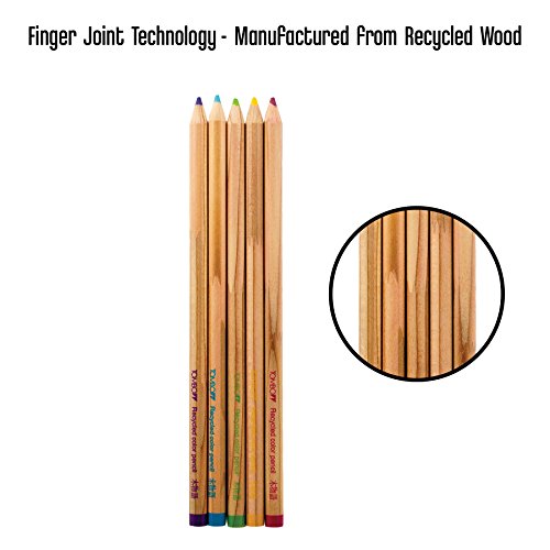 -. Feature : Recycled color pencils made with repurposed finger jointed wood / Set of 5 pencils, 1 each of: Magenta, Yellow Green, Light Blue, Violet, Yellow / High quality wax based lead is artist grade for lasting brilliant color / Wax based lead produces rich, creamy texture and smooth even blending / Dense lead prevents breaking while sharpening