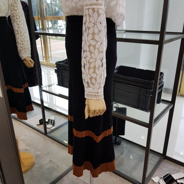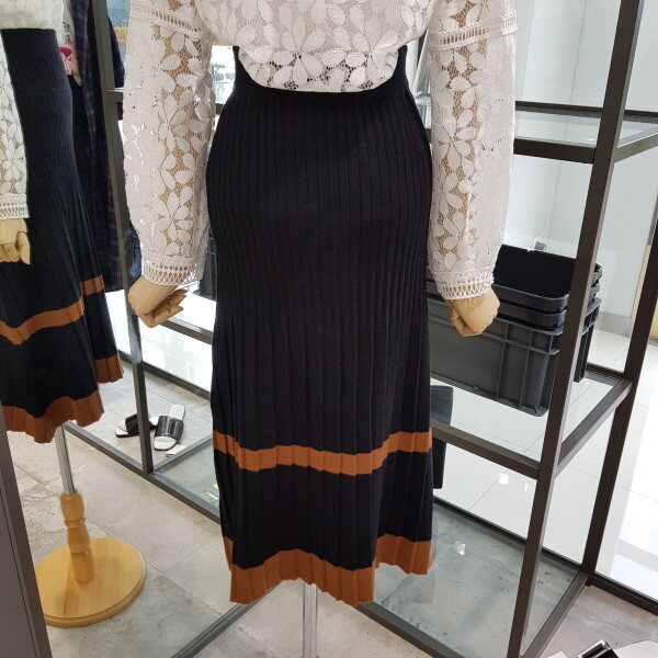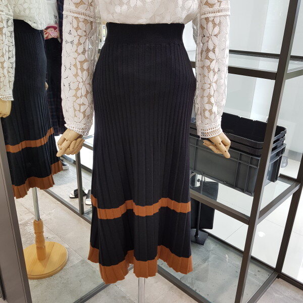 반에이크 밴딩 스커트 입니다^^깔끔한 블랙에 브라운 컬러 포인트가 들어가 너무 단조롭지 않고 소재가 신축성있는 상품이라 편하게 착용할수 있어요^^