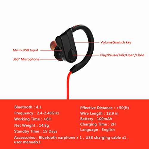 -. Binding : Wireless Phone Accessory -. Brand : SKYSON -. Color : Red -. EAN : 0799355697507 -. Feature : 【HIGH FEDELITY SOUND】 The fantastic dynamic drive unit and latest bluetooth 4.1 technology produces fantastic sound quality with clear treble / 【COMFORTABLE TO FIT】 The slot design helps to avoid stethoscope; you can adjust the cable length to fit different size / 【SPORT DESIGN AND SWEATPROOF】The light Bluetooth earphone makes no influence whenever you are doing sports fitness the 3 sizes IPX7 silicone earbuds makes you indulge yourself into the music world without worry about the sweat streams / 【COMPATIBILITY】 The top brand British CSR Bluetooth chips makes the Bluetooth connection stable, it's compatible with 99% bluetooth devices / 【USAGE SCENARIOS】 Skyson sport bluetooth headset is perfect for sports lovers when doing fitness and outdoor sports like Running, Jogging, Climbing, Hiking and Biking -. Label : SKYSON -. Manufacturer : SKYSON -. Model : HV-599 -. PackageQuantity : 1 -. ProductGroup : Wireless -. ProductTypeName : WIRELESS_ACCESSORY -. Publisher : SKYSON -. Studio : SKYSON -. Title : SKYSON Sport Bluetooth Headset with Mic Sweatproof and Stereo Sound Bluetooth 4.1 Best Partner for Runners -. UPC : 799355697507 -. Warranty : manufacture warranty for 12 months from date of purchase