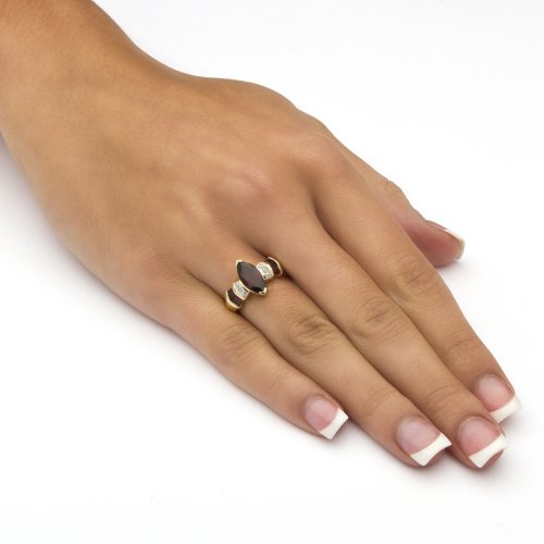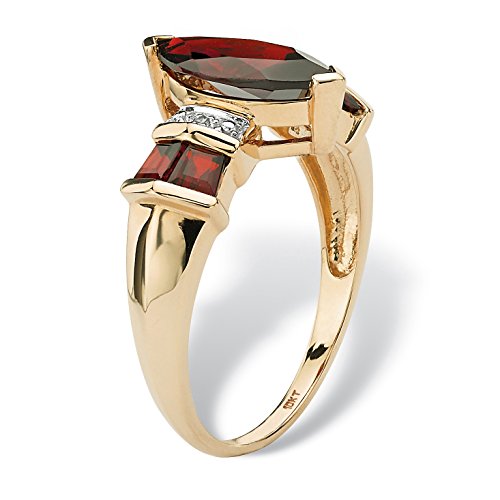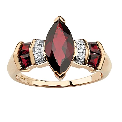 -. Title : Marquise-Cut Genuine Red Garnet and Diamond Accent 10k Yellow Gold Ring