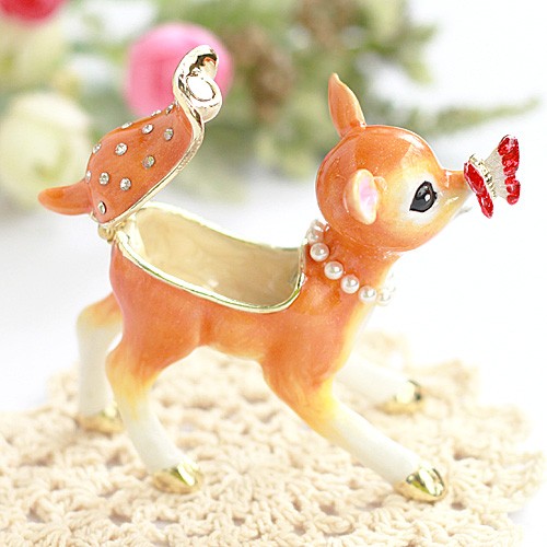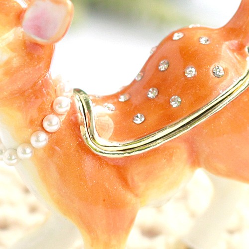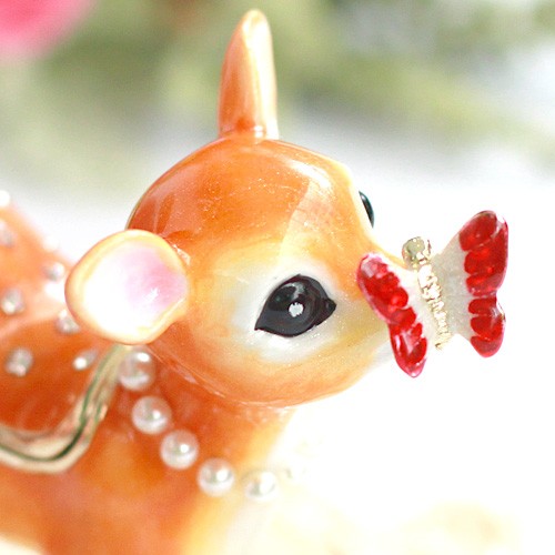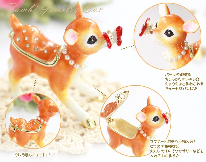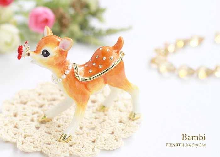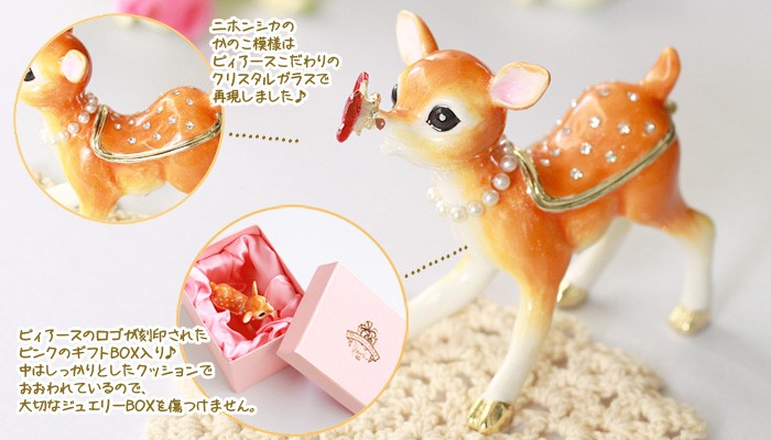 | ジュエリーボックスと言えば、指輪やピアス、ネックレスなどのアクセサリーを入れる引き出し型のケースを思い浮かべる方が多いかもしれません。 ピィアースのジュエリーボックスは、動物や花などをモチーフに作られ、合金製でずっしりとした重さがあります。また高品質のクリスタルガラスを贅沢に使用。まるでジュエリーボックスそのものが宝石のような、高級感溢れる仕上がりです。 小物入れとしても使えるように開閉口には磁石が取り付けてあり、アクセサリーなどなくしやすいアイテムの収納ができます。キラキラと美しく輝く宝石箱は、そのまま飾って楽しめるインテリア雑貨として多くの方に愛されています。 国内トップクラスのジュエリーボックスメーカーであるピィアースは、2004年ごろから本格的に宝石箱の製造を始め、現在のジュエリーボックスはなんと300種類以上。大規模展示会でもご好評いただいており、全国有名百貨店でも販売されています。 自社工場でひとつひとつ丁寧に手作りし、原型作成、研磨、加工、着色、小さなクリスタルガラスの取り付けなども全て手作業で行われるこだわりのハンドメイド品。完成後は厳しい検品の後、丁寧に梱包作業をしお客様にお届けしております。 ピィアース商品は、全国有名百貨店および全国有名宝石店チェーンにてお取り扱いいただいている高品質商品です。 ★自分へのご褒美に…コレクションして並べて飾ると、さらにかわいらしさUP! ★恋人へのプレゼント…中にアクセサリーを入れて、サプライズな贈り物として ★家族への感謝ギフト…お母さんや姉妹へ、日頃のありがとうの気持ちを込めて ★誕生日プレゼント…お友達の喜ぶ顔が見たいから、いつもと違うキラキラギフトを ★小さな女の子へ…まるでお姫様が使っているようなキラキラ宝石箱は女の子の憧れ! |