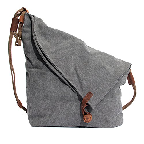 UER Unisex Fashion Canvas Asymmetric Cross-Body Shoulder Bag with Leather Strap