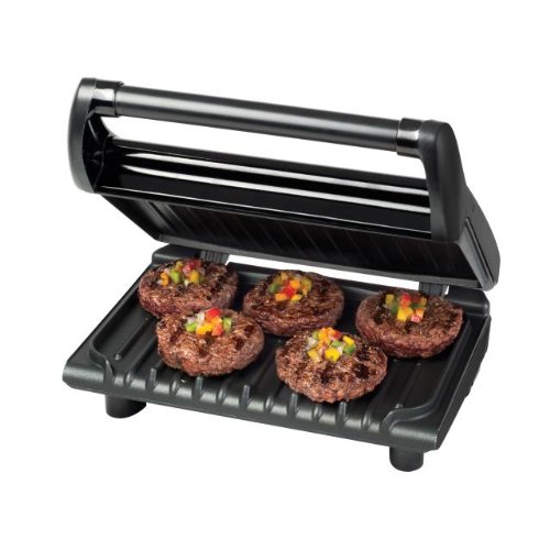 Cook nutritious meals for your whole family. The 80-sq.-in. grilling surface has enough space to cook up to 4 servings of your favorite grilled foods, without a need to add oil or butter thanks to the George Tough nonstick coating. The patented sloped design lets grease, fat and excess oil drain away from food, for healthier cooking with ease. All this, plus a custom-fit dishwasher-safe drip tray plus an extended safe-touch handle for added peace of mind.Feature