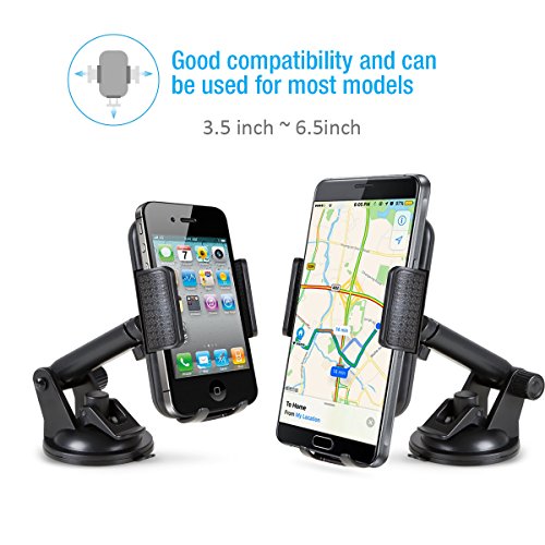 Car Mount EC Technology Universal Phone Holder 360 Degrees Rotation, Extendable Arm, Strong Sticky Gel Pad Car Mount for iPhone/Nexus/Samsung S6/S5 Note 5/4/3 Huawei P9 and Other Smartphones