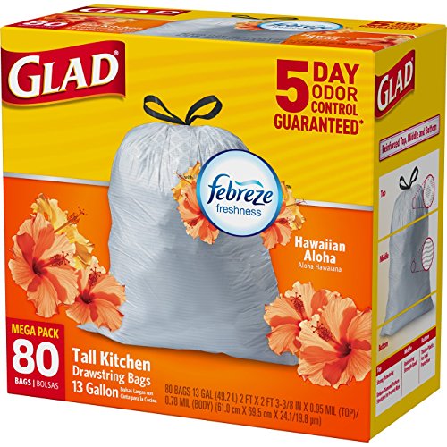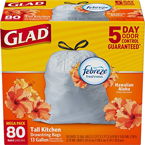 Glad OdorShield Tall Kitchen Drawstring Trash Bags - Febreze Hawaiian Aloha - 13 Gallon - 80 Count