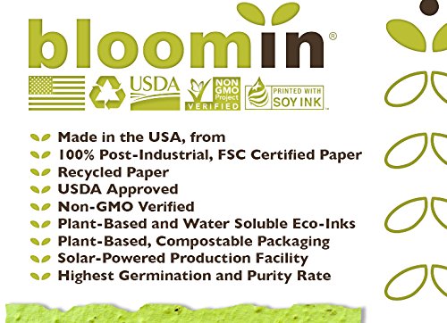 - ECO-FRIENDLY - Bloomin has perfected the centuries-old process of embedding seeds in paper to make greeting cards, thank you cards, craft paper and special items that will actually grow into flowers, herbs and vegetables!
