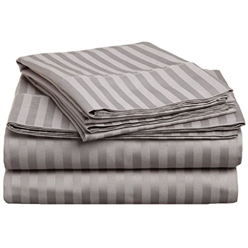 Rinku Linen Real 600-Thread Count Sleeper Sofa Bed Sheet Set Pure Egyptian Cotton Queen Sofa (60" x 74") Silver Gray Stripe Fit Up to 5" Inches Deep Pocket .
