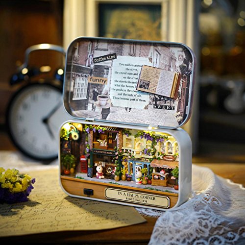 Studio : Dreamyth Publisher : Dreamyth Product Description Description: Before the production can prepare a set of auxiliary tools, such as scissors, tweezers, knife and so on under the age of 12 might find assembling this kit alone difficult, it will be better if parents can do it together with them, or help over once needed Material: Wood, Fabric, Paper, Plastic, etc. (Glue are not included) Assembly Time: 6-10 hours Pattern: Green Forest Assembly Size(Approx.): (L*W*H)14.3*8.4*2.6cm Light: LED String Included 3 Pcs LR44 Electronics Package Included: 1 set * Theatre Tin Box 0
