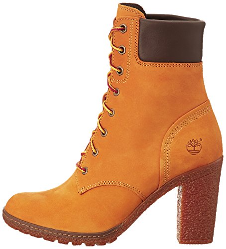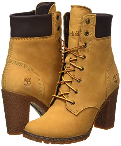 FEATURES of the Timberland Women's Glastenbury 6 Inch Boot Premium nubuck leather upper from an LWG Silver-rated tannery for comfort, durability and long-lasting wear Lace-up style with 100% organic cotton laces allows for an adjustable fit Padded collar for a comfortable fit around the ankle 100% Recycled pet mesh lining and footbed cover made from recycled plastic bottles is comfortable, breathable and environmentally conscious OrthoLite footbed provides all-day cushioning and support Durable textured rubber heel and rubber lug outsole for traction is made with 15% Recycled rubber Textured Rubber Heel Height: 3" / 7.5 cmFeature