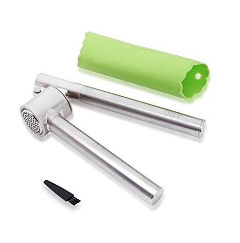 UGY Garlic Press and Peeler Set. Heavy Duty Stainless Steel Kitchen Garlic Mincer, Crusher