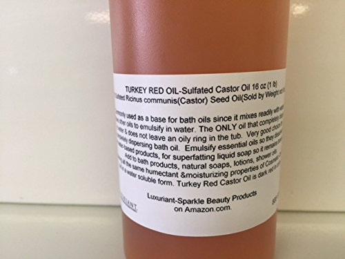 Commonly used as a base for bath oils since it mixes readily with water & allows other oils to emulsify in water. The ONLY oil that completely disperses in water & does not leave an oily ring in the tub. Very good choice for a completely dispersing bath oil. Emulsify essential oils so they dissolve in other water-based products, for superfatting liquid soap so it remains transparent. Add to bath products, natural soaps, lotions, shower oils. Containing all the same humectant & moisturizing properties of Cosmetic Castor Oil but in a water soluble form. Turkey Red Castor Oil is dark red in colourFeature