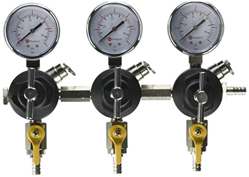 - The triple gauge regulator comes equipped with three pressure release valves and three gauges that indicate how much CO2 pressure is inside of the kegs