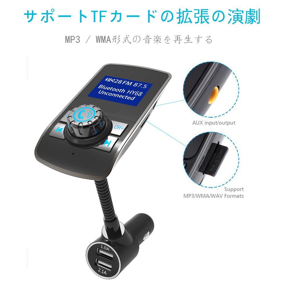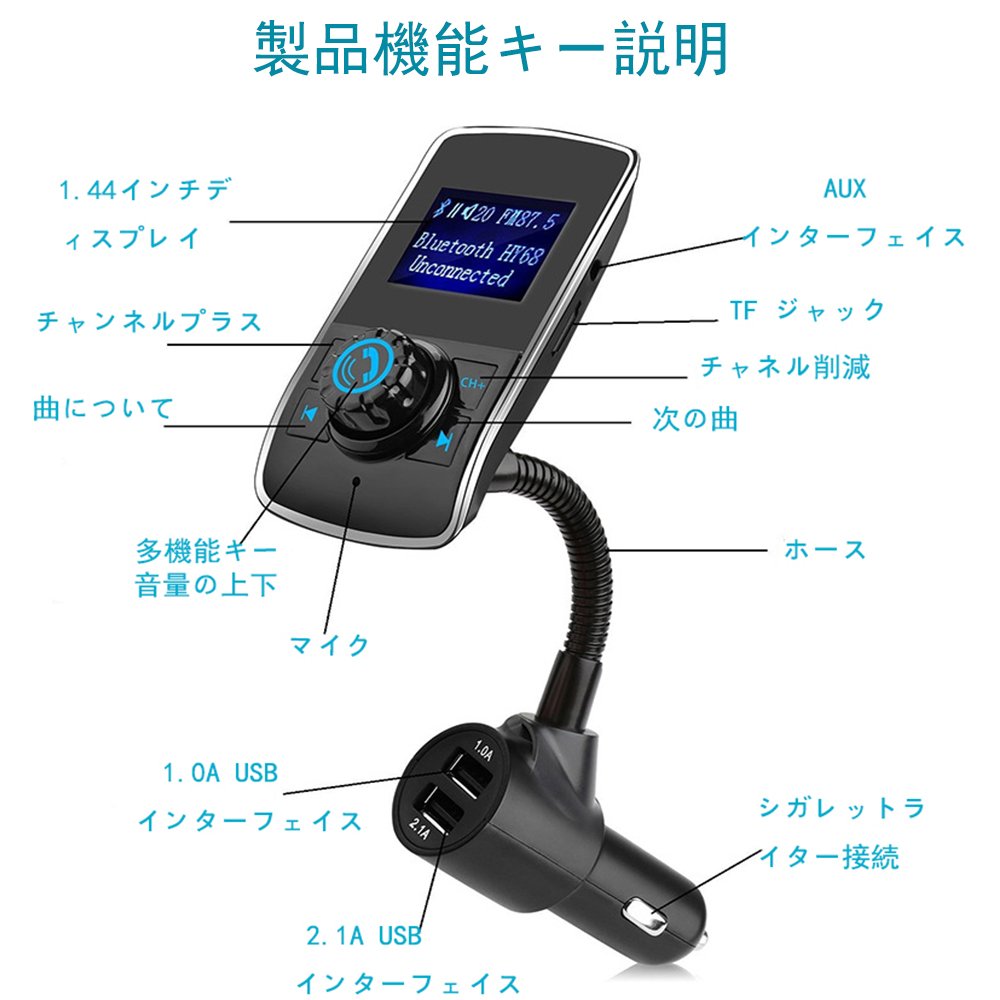 Note: When connecting with the AUX line, please adjust the frequency of the device as same as the product.