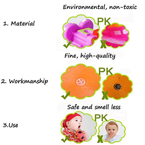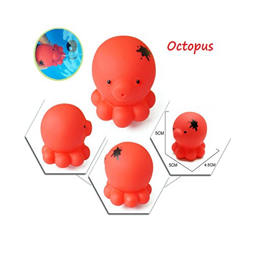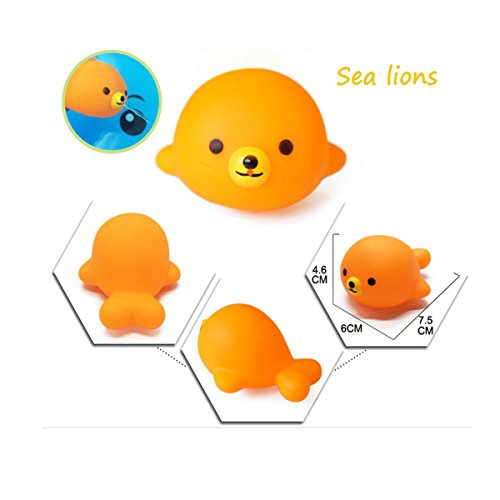 -. Feature : 6 assorted characters: It includes duck, octopus, frog, sea lions and so on / Enjoy the bathtub time fun: These colorful bath toys can squirt water when squeezed making it really fun / Environmental and non-toxic material, high quality workmanship. Safe and smell free / Different toys have different sizes, please see the pictures as a reference. Perfect size and shape for babies little hands to hold / Free bath organizer: This free bath organizer is large and sturdy enough to hold more kids toys, keep the baby toys clean and dry