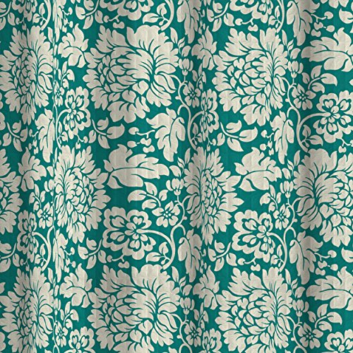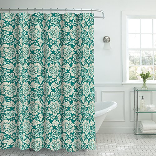 Creative Home Ideas Oxford Weave Textured 13-Piece Shower Curtain with Metal Roller Hooks, Cabbage in Rose Blue/Ivory