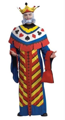 -. Binding : Toy -. Brand : Rubie's -. ClothingSize : One Size -. Color : multi-colored -. Department : mens -. Feature : Size: Standard (One size fits most up to jackets size 44.), Large (Fit most up to chest size 46 in.) / Includes a robe and a crown with attached beard. -. Label : Pro-Motion Distributing - Direct -. Manufacturer : Pro-Motion Distributing - Direct -. Model : RUB16871ECQL -. MPN : R16871 -. PackageQuantity : 1 -. PartNumber : R16871 -. ProductGroup : Toy -. ProductTypeName : TOYS_AND_GAMES -. Publisher : Pro-Motion Distributing - Direct -. Size : One Size -. SKU : P399967 -. Studio : Pro-Motion Distributing - Direct -. Title : Rubie's Costume Co Playing Card King Costume