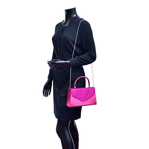 -. Feature : SIZE: 8.5"W x 5.0"H x 2.0"D (inches). Inside can easily fit a cell phone, wallet, compact mirror, lip gloss, and a pack of gum. / CLASSIC DESIGN: Dasein elegant evening bag / party clutch for women, with top round handle for carrying it satchel style. Frosted with glistening sheen on the front flap / DETAILS: Silver tone chain strap (detachable). Fold over front design with magnetic snap closure for easy access to stored contents. / MATERIAL: Made from high quality polyester with frosted glitters. Soft fabric interior with top pouch pocket will fit your phone, cash, and other small essentials. / 100% MONEY-BACK: We think you'll adore this bag. But in case you're dissatisfied with it for whatever reason, return it to us within 30 days for a FULL refund. No hassles, no questions asked, no risks.