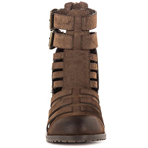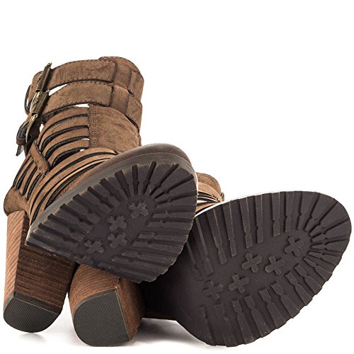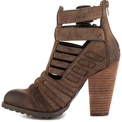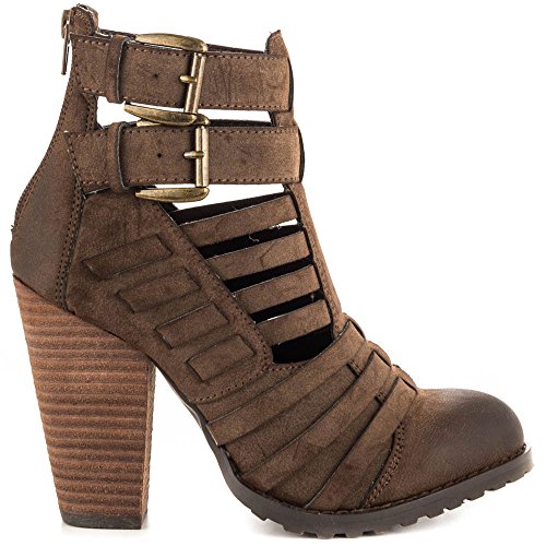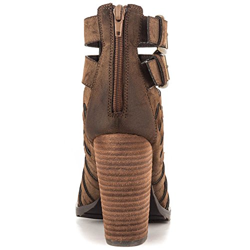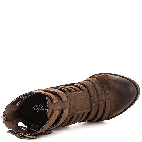 Make your mark this fall in the Mart. This transitional boot by Penny Loves Kenny features a rounded toe with cut outs and double buckles. Brown faux leather covers the silhouette while a 4 inch block heel delivers a boost.Feature